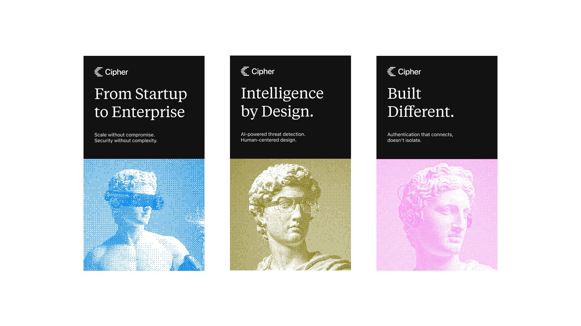 Brand & Web Design for Cipher a modern auth infrastructure tool. Cipher is designed to be the invisible backbone of a product, not a hurdle to entry, and the identity brings that idea to life by fusing the timeless stability of the past with the agility of modern tools.